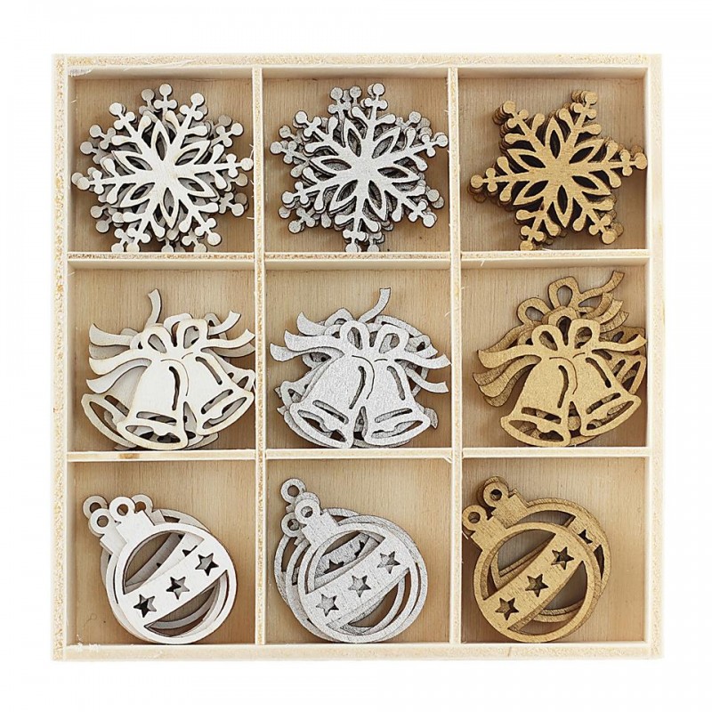 Лазерно изрязаните дървени фигурки са красива Коледна декорация.Комплектът съдържа 45 броя фиг..