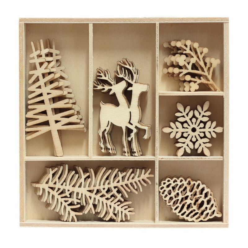 Кутия с 45 броя Дървени Коледни Фигурки - Сладка Коледа