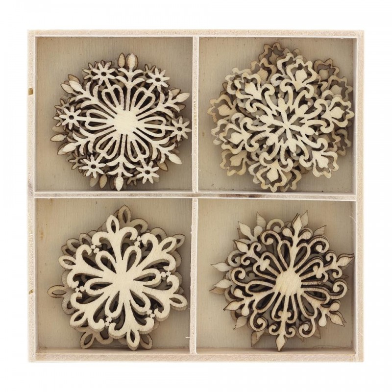 Лазерно изрязаните дървени фигурки са красива Коледна декорация.Комплектът съдържа 45 броя фиг..