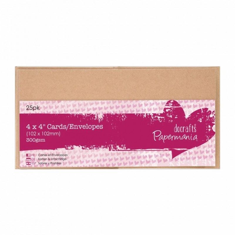 Картички и Пликове - Крафт, 10,2 см х 10,2 см, 300гр./кв.м., 25 бр.