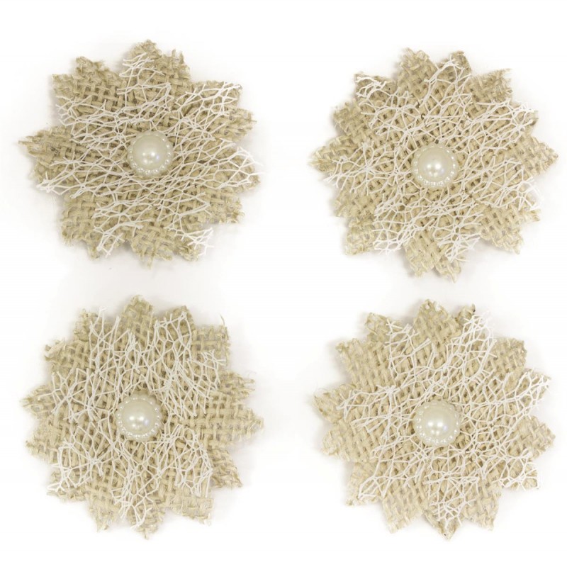 Цветчета от Плат, Магнолия с Дантела и Перличка, 3 см, 9 Броя