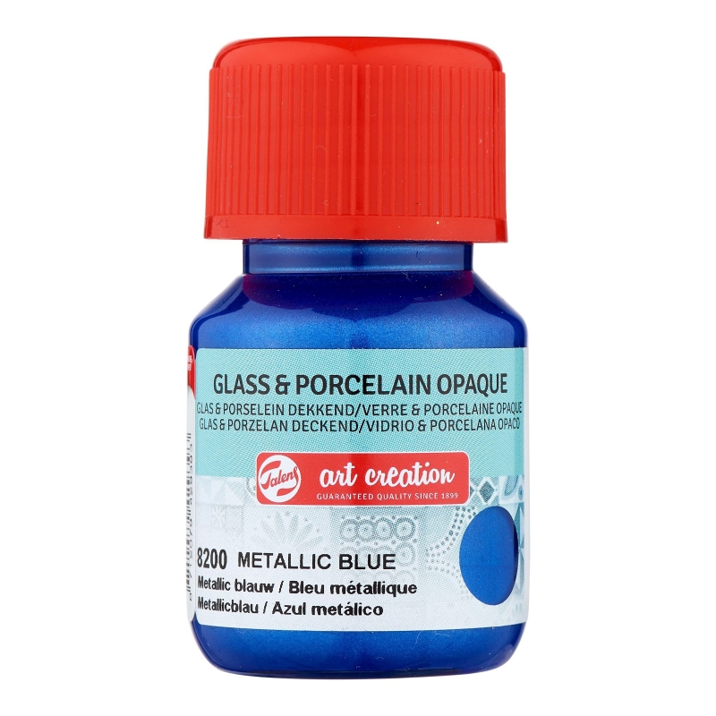 Синя с металиков ефект плътна боя за рисуване върху порцелан, керамика и плътно стъкло.